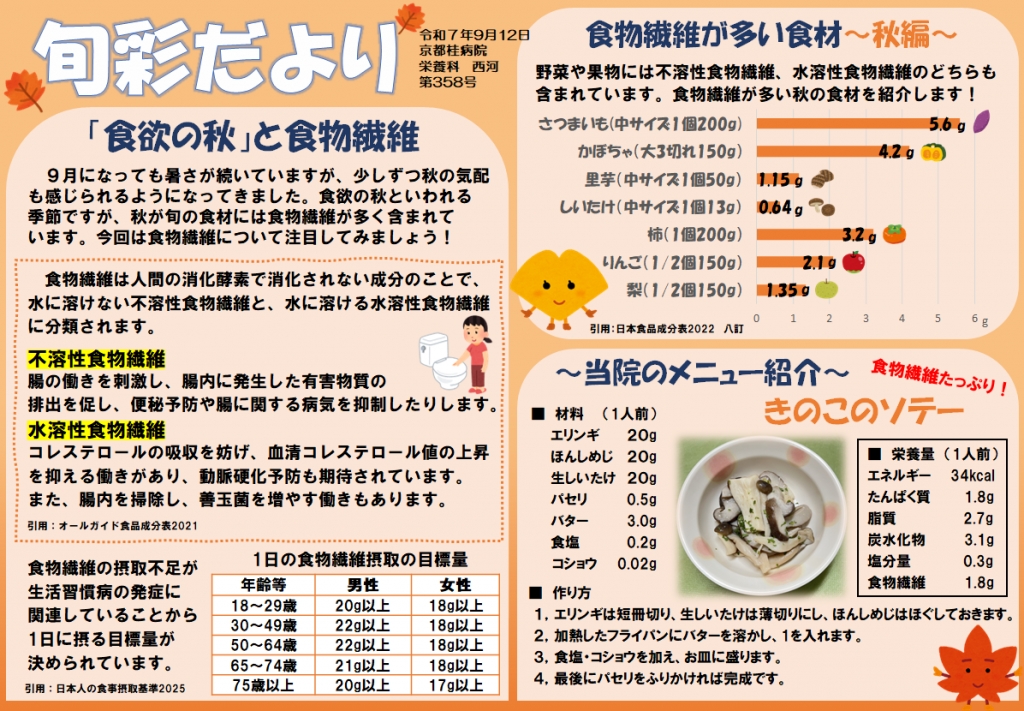 秋が旬の食材に多く含まれる『食物繊維』がテーマです🍠🍄🍎