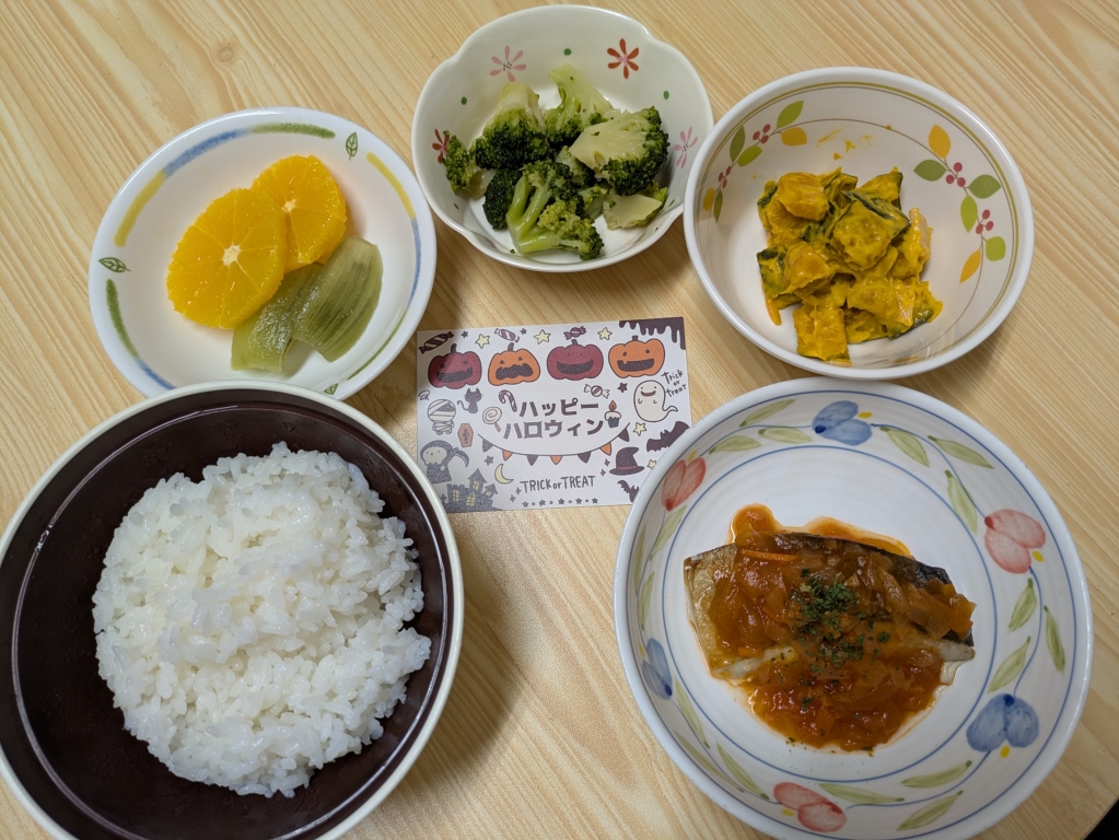 当院ではハロウィンを少しでも味わっていただければと、かぼちゃ🎃を使った献立を提供しました♩病院食が少しでも入院中の癒しとなれば嬉しいです😌