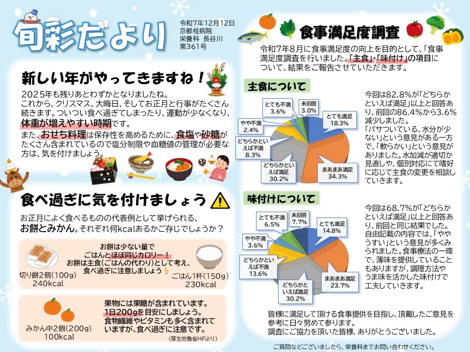 そして今回は「食事満足度調査」の結果も掲載しています。
