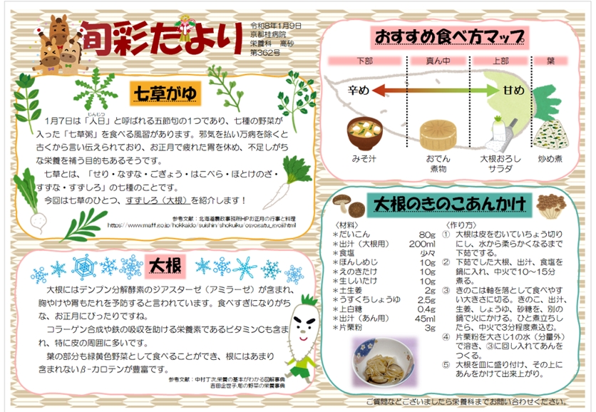 掲載している当院のレシピ「大根のきのこあんかけ」は一見、地味に感じるかもしれませんが