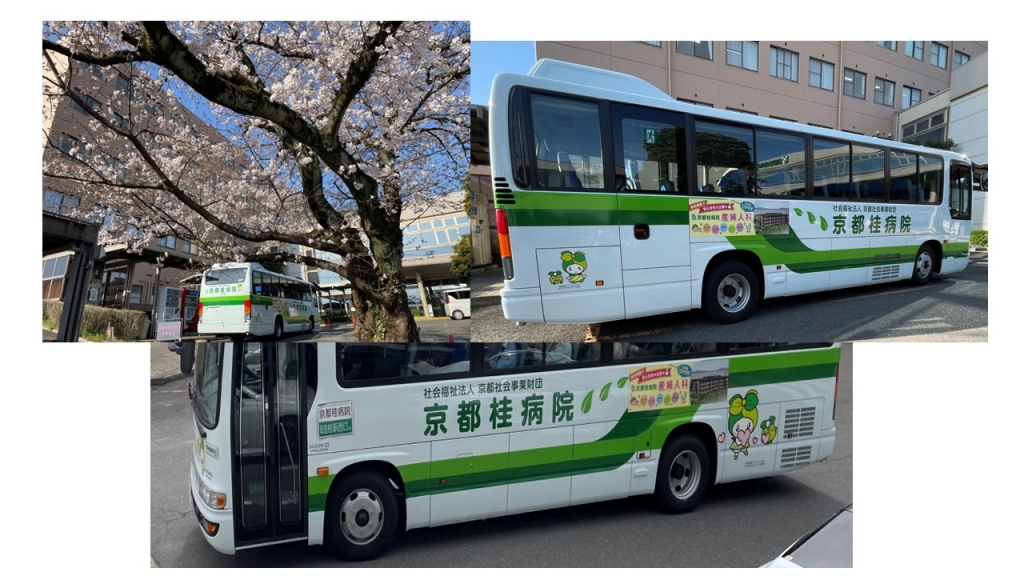 新しいと言えば、新年度に先駆けて、3月25日から、京都桂病院のバスがリニューアルしております!当院の名称にある「桂」の葉っぱを思わせる、きれいなグリーンが印象的なバスです。当院のマスコット、かつらちゃんとゲノム博士も一緒にいます💛