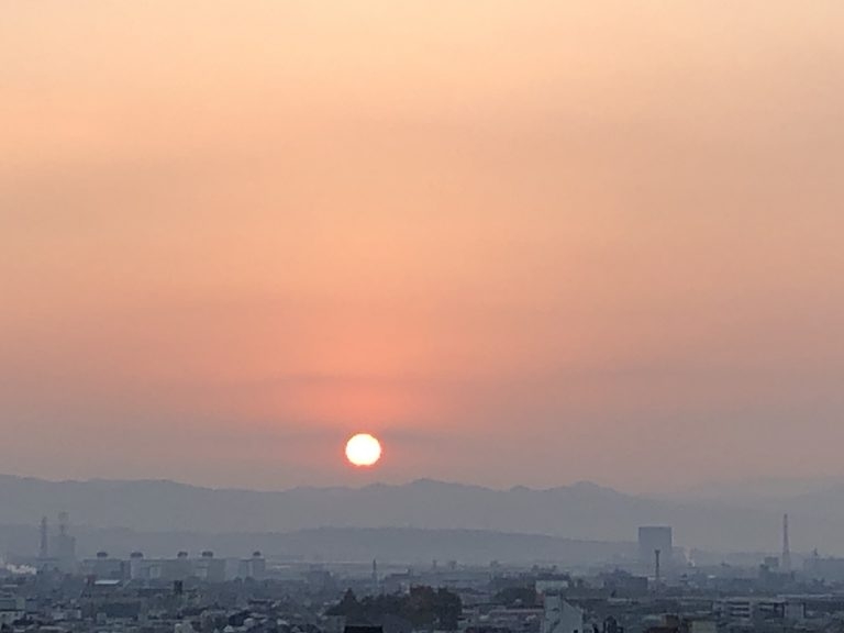 写真はある日の出勤時、研修医室から見えた朝日です。