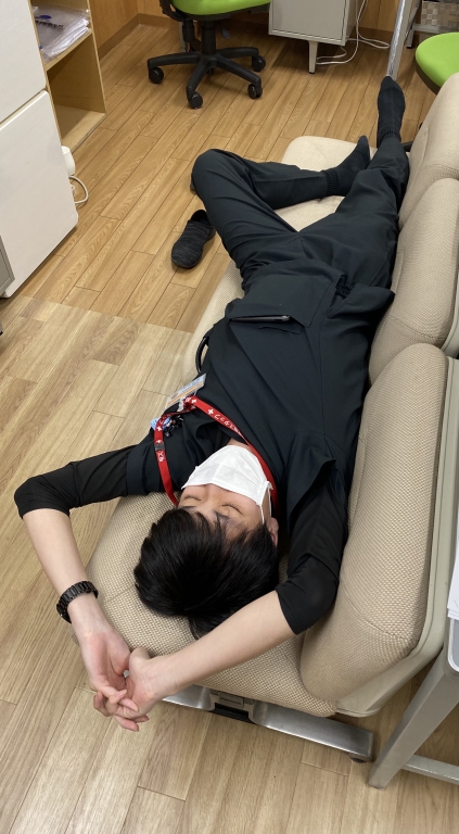 最後に、研修医室でくつろぐ我らがリーダーの姿をご覧下さい。